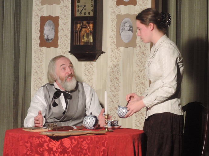 - Да, вот половина наших постановок – это мои пьесы, о которых я сейчас говорил. Таким образом, еще одна наша особенность в том, что театром руководит режиссер-драматург-поэт. Вторая половина постановок – это классика, что замечательно дополняет наш рассказ об авторах… Так эти спектакли могут идти парами: спектакль о Шукшине и через некоторое время спектакль по Шукшину и т. д.