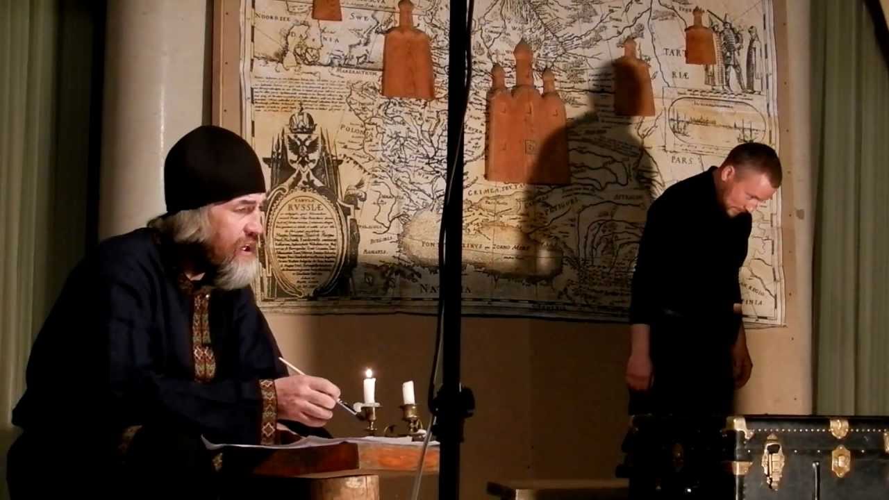 - В начале 80-х я учился в студии, а затем играл в театре у Льва Шварца. Это была очень интересная школа… Вторая половина 80-х совпала с воцерковлением и я оставил театр, и театральную карьеру. Тогда мне казалось, что дело это исключительно греховное. Я ошибался: грех присущ человеку, а не жанру, не виду искусства. Напротив, в скорости определилась ясная мыль: надо создавать свой, авторский и именно православный театр. К театру меня привело увлечение традиционной культурой – фольклором и этнографией. Фольклорному движению я отдал много лет. В этом году мы провели 27-й по счету фольклорный фестиваль. Здесь (в народной культуре) среди прочих жанров открылся мне такой жанр, как фольклорный театр. А в нем открылось многое – приемы, методики, сам материал легший в основу того авторского театра, который мы и создали… Начинали со сценок ряженых (это делают многие фольклорные коллективы), потом – народные пьесы: «Лодка», «Ирод», «Царь Максимилиан» и т. д. А потом я понял – на этих принципах можно создавать спектакли любой темы и сложности.