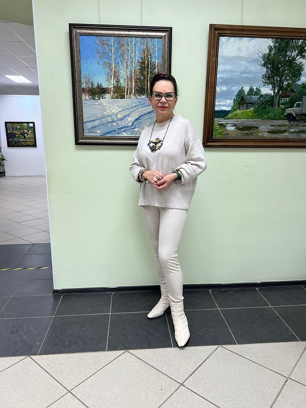 - Я родилась в Тверской области, г. Вышний Волочек. Там уже 140 лет находится Академическая дача художников имени Репина. Там прошло мое детство, там я провожу очень много времени. А Костромской край является моей второй «не малой, малой» Родиной. Меня привезли в Кострому, когда мне было 3 месяца. И я жила рядом с Волгой, первый дом, куда меня привезли – это были два пятиэтажных дома на набережной реки Волга, недалеко от моста. И первое слово, которое я сказала, было слово: «вóда». Видимо, потому что из окна я видела постоянно воду и гуляла, в основном, на пляже и весной, и осенью. А всё лето проводила в родительском доме под Вышним Волочком… Кострома для меня – вторая Родина. Я много работаю в Костромском крае. Открыла для себя в этом году отдалённые дивные места Костромской области. Очень красивые городки: Солигалич, Чухлома, Кологрив, Нерехта… Поэтому виды Костромы и области представлены на выставке тоже в большом количестве…